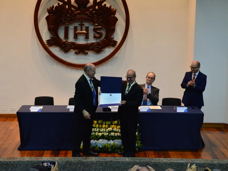La ceremonia contó con la presencia del padre Luis Fernando Múnera, S.J., rector de Javeriana Bogotá, y quien dedicó unas palabras a su amigo y compañero. "Reconocemos tu esfuerzo y compromiso, has sabido inspirar y acompañar a la comunidad universitaria. Recordaremos siempre tu paso por la rectoría, donde has dejado una huella que, sin duda, será perdurable", expresó con gratitud el padre Múnera. Asimismo, destacó su capacidad como líder, inteligencia y respeto, y que siempre ha sabido que, en materia de responsabilidades, él solo es uno entre todos.